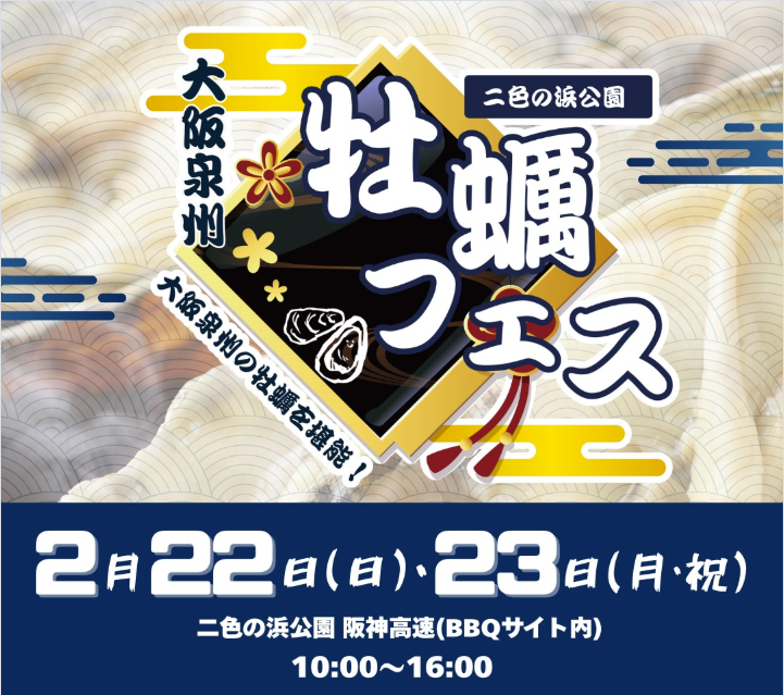 大阪泉州牡蠣フェスin二色の浜公園予定通り開催致します! 牡蠣料理やホットフードの美味しい食べ物や縁日物販等、11店舗が大集合!! 開催日 2026年2月22日~2月23日 開催時間 10:00~16:00 場所 府営二色の浜公園BLUEPARK 帆船マストモニュメント下 最寄り駐車場 府営二色の浜公園BLUEPARK 第一駐車場 Post Share Hatena Line RSS feedly Pin it note イベント一覧